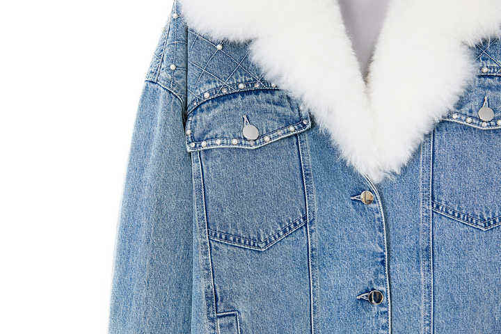 Venta al por mayor de fábrica, chaqueta vaquera de piel de gran oferta 2025 para mujer, chaqueta vaquera con cuello de piel para mujer