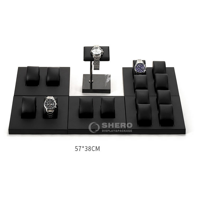 Mayorista de fábrica Personalizado 2 Ranura 4 Ranura Negro Almohada Pu Cuero Reloj Exhibición Bandeja