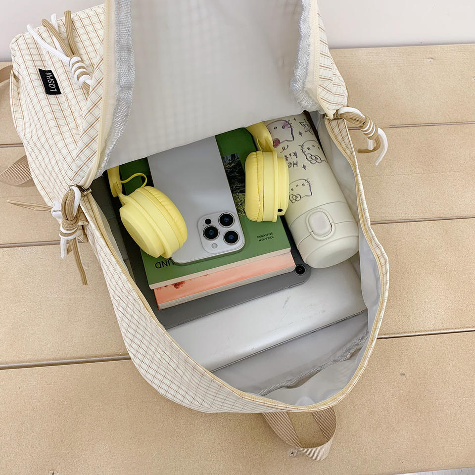 Mochila de Nailon para Estudiantes, Venta al Por Mayor de Fábrica, Mochila a Cuadros de un Solo Color con Cierre Especial