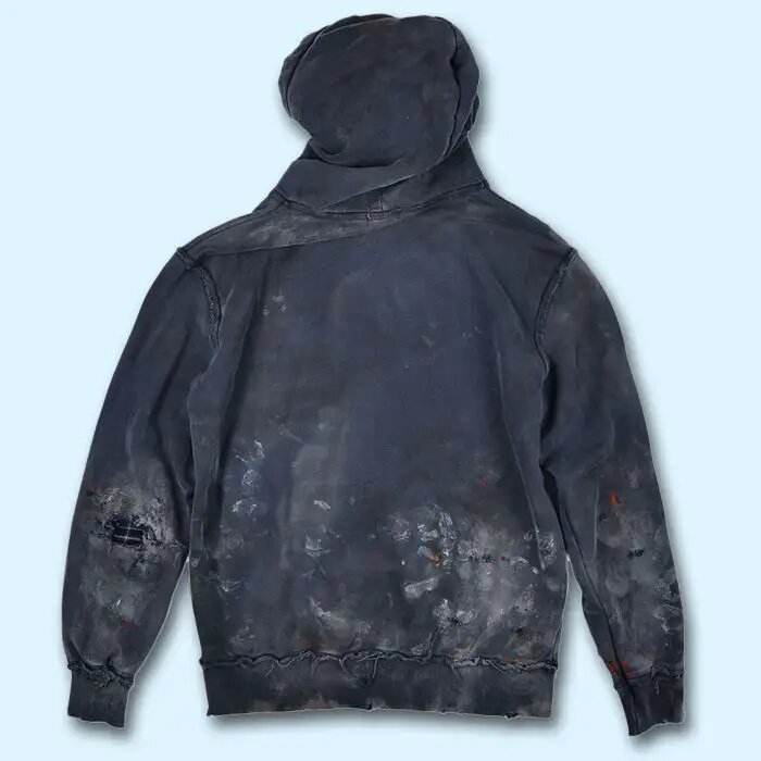 Sudadera con capucha rasgada lavada vintage de algodón 100% personalizada de fábrica para hombre, ropa de calle a la moda, Sudadera con capucha salpicada con logotipo personalizado, Sudadera con capucha desgastada