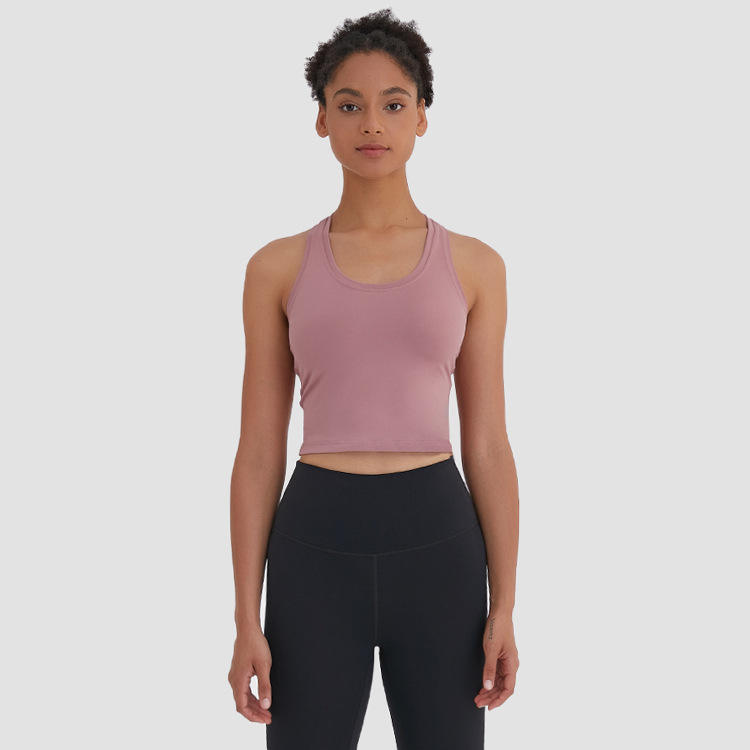 Top Deportivo Corto para Mujer, Estilo Yoga, Color Rosa, con Tiras, Personalizado de Fábrica