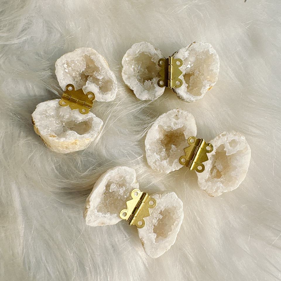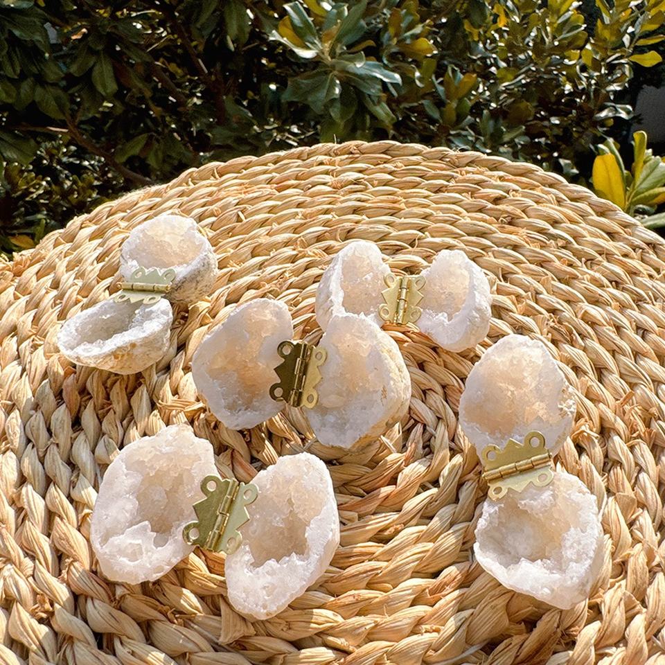 Personalización de fábrica Nueva llegada de alta calidad artesanías de cristal natural ágata blanca caja de anillo de geoda marroquí para la venta
