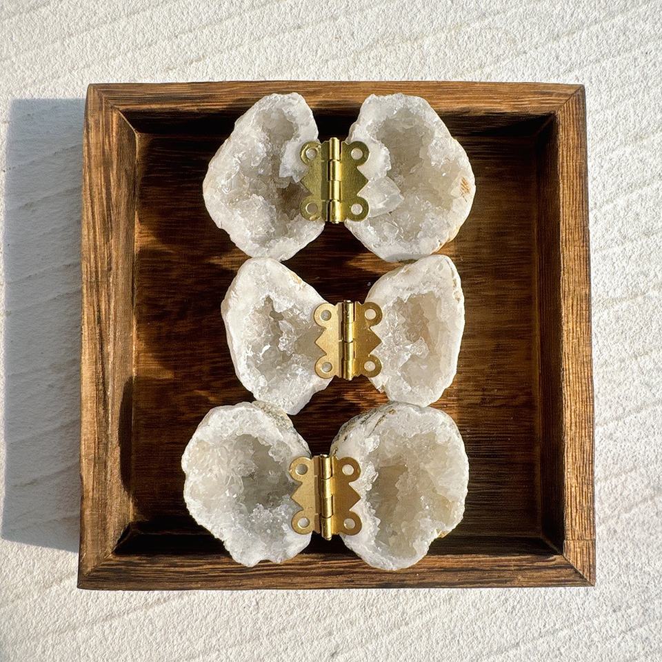 Caja del anillo Geoda marroquí de ágata blanca