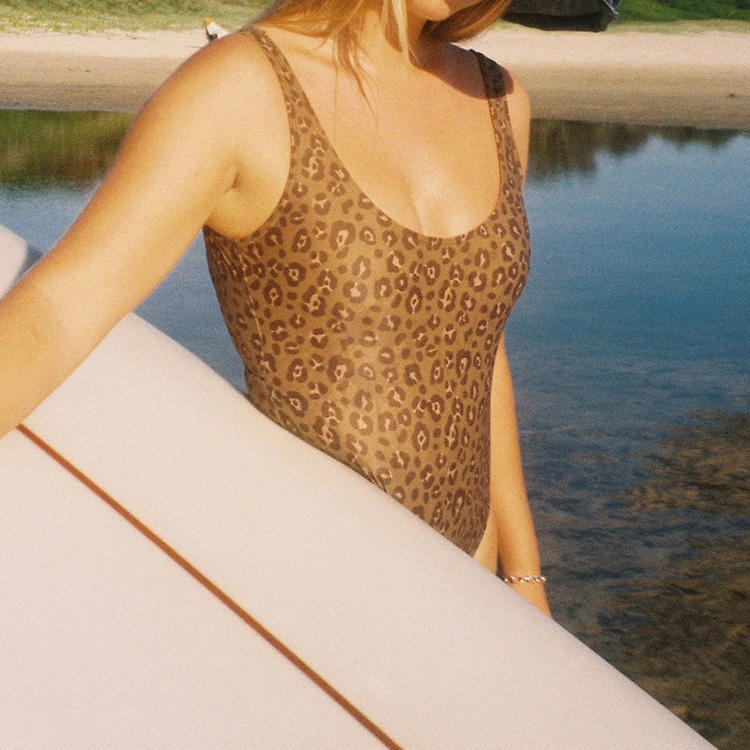 Traje de baño de una pieza con estampado de leopardo de playa, diseño de fábrica, de nailon de alta calidad.