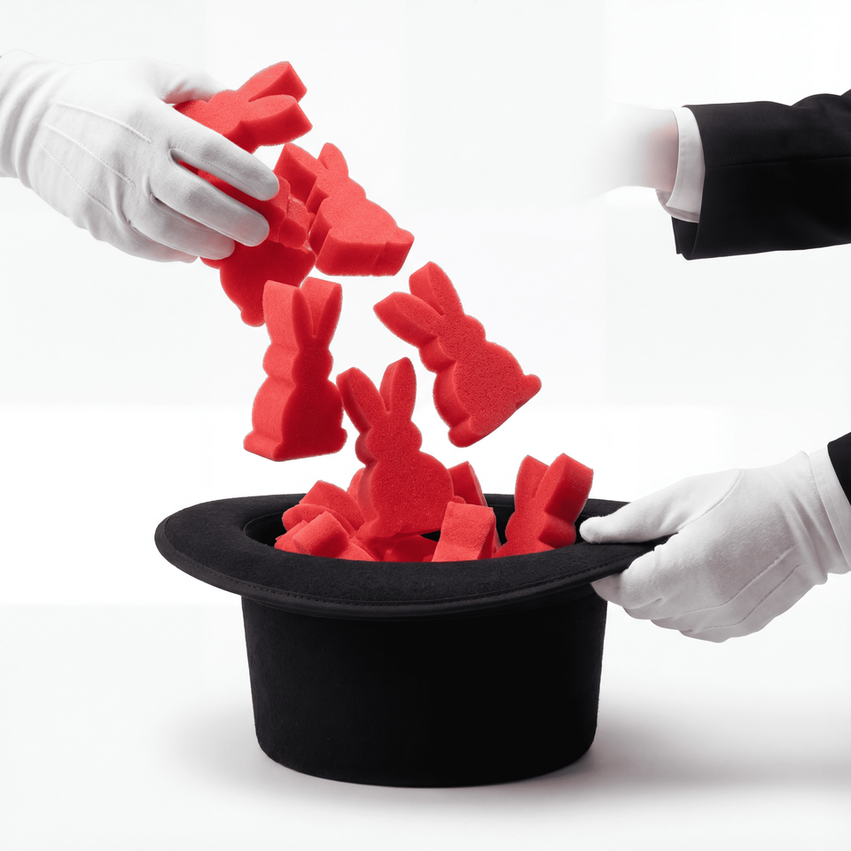 Esponja mágica directa de fábrica, esponja de espuma suave, esponja elástica comprimible, bloque de espuma para accesorios de magia de primer plano.