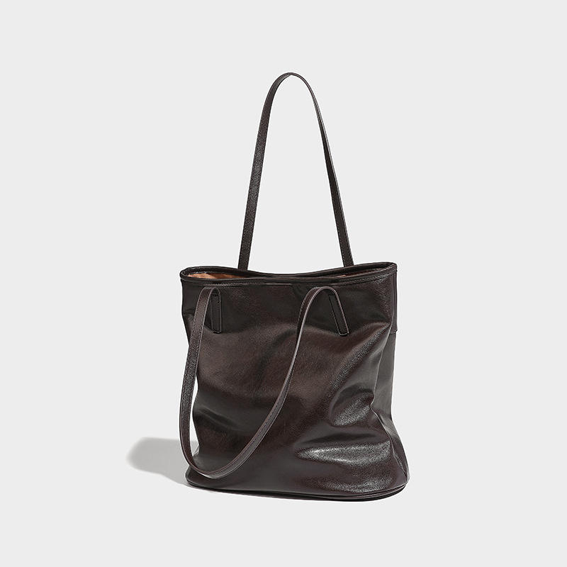 Bolso Tote de cuero marrón oscuro de venta directa de fábrica con diseño de doble correa, bolso simple de mujer de gran capacidad