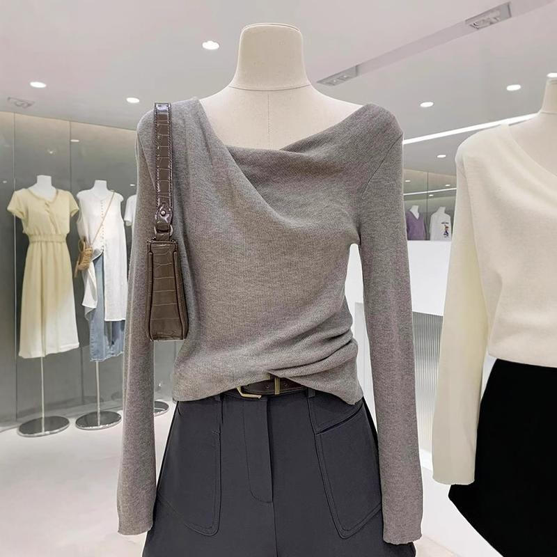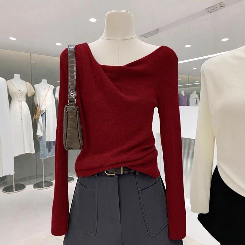 Venta directa de fábrica, suéter de manga larga de color sólido, suéter delgado para mujer, ropa interior, parte superior inferior