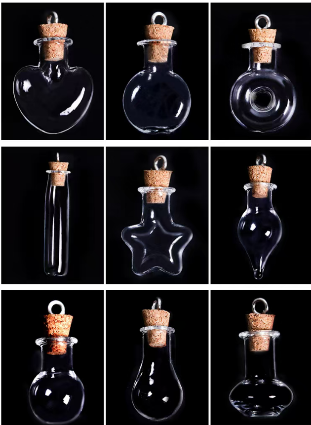 Venta directa de fábrica, venta al por mayor a bajo precio de botellas de los deseos irregulares, botellas en forma de corazón y botellas de corcho.