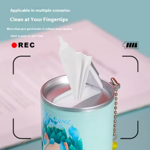 Venta directa de fábrica de mini toallitas húmedas, tela no tejida, 36 toallitas por paquete, toallitas húmedas grandes tipo lata de refresco, toallitas de limpieza portátiles.
