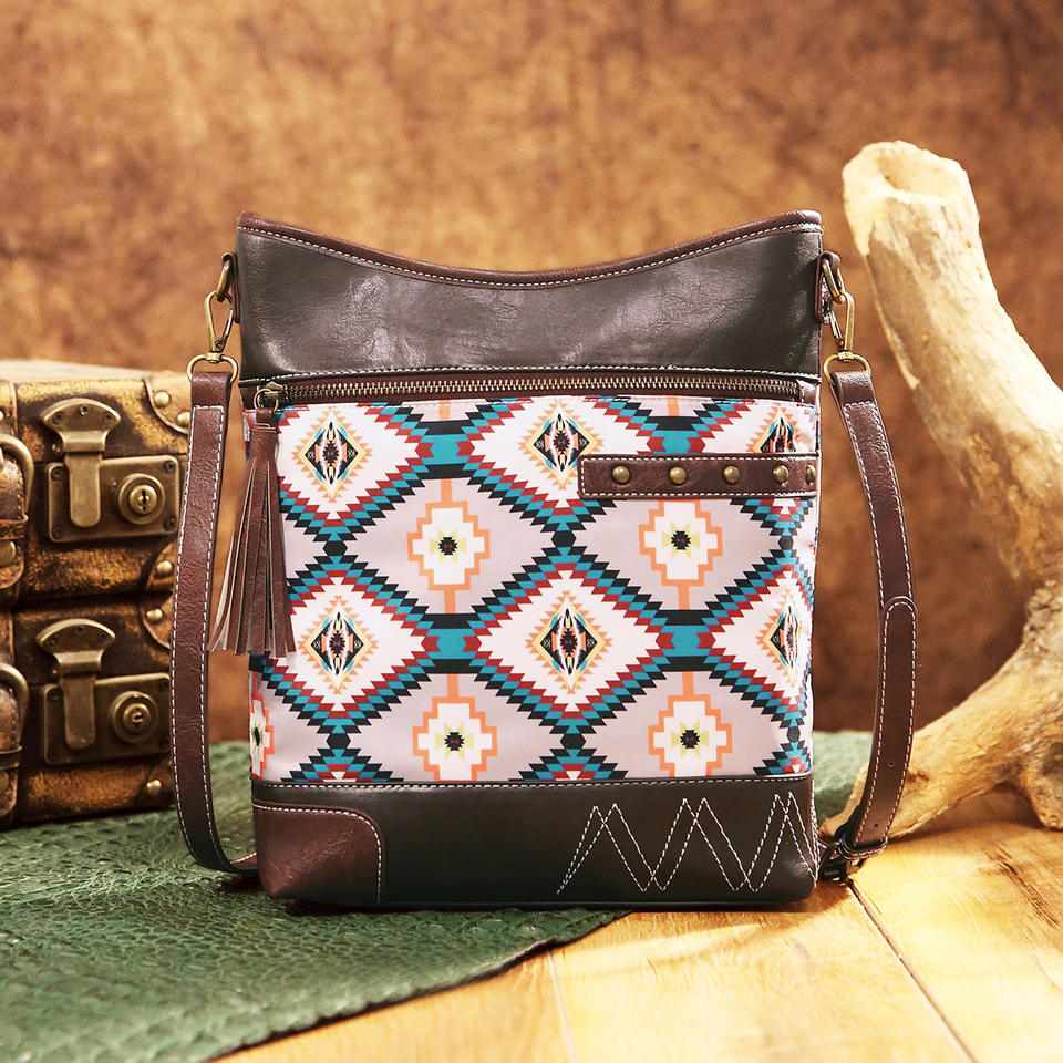 Venta directa de fábrica vintage trenzado borla bandolera multicolor imitación cuero literario llamativo