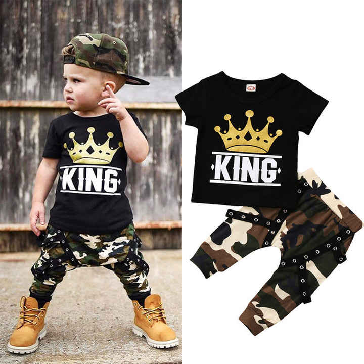 Conjuntos de Ropa de Camuflaje de Verano para Niños, Diseño Nuevo, Disponibles en Fábrica, Manga Corta, para Niños de 0 a 5 Años