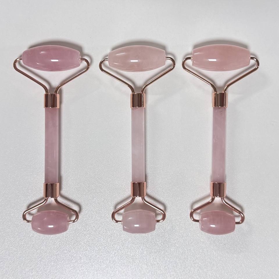 Venta de fábrica, herramientas de masaje facial de cuarzo rosa de alta calidad, masajeador de rodillo facial de piedra Natural 100%, rodillo de Jade