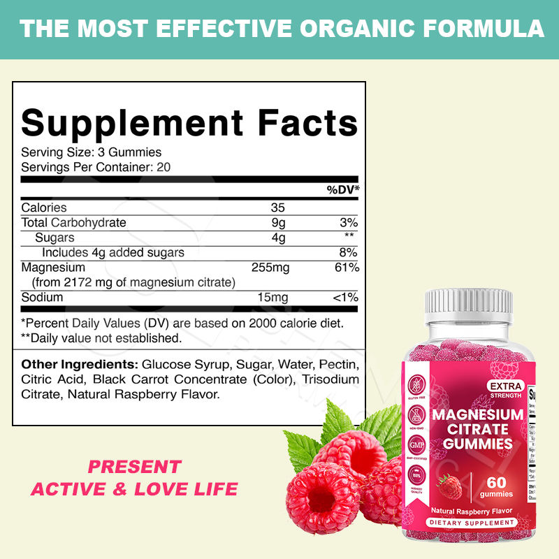 Gomitas de citrato de magnesio y citrato de potasio de venta directa de fábrica, suplemento en gomitas para la relajación muscular