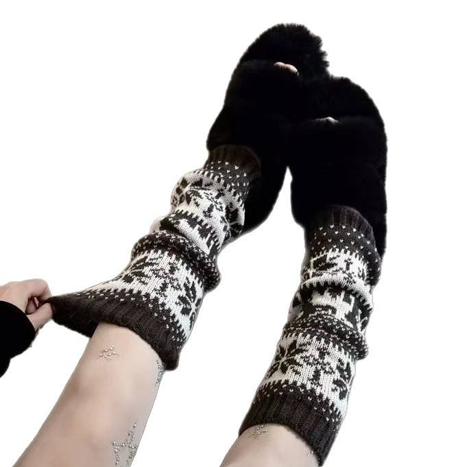 Calcetines holgados de punto Fair Isle con patrón de copo de nieve, calentadores de piernas cálidos para invierno para mujer, moda de otoño e invierno