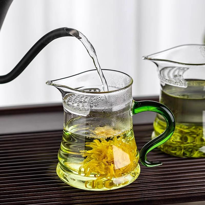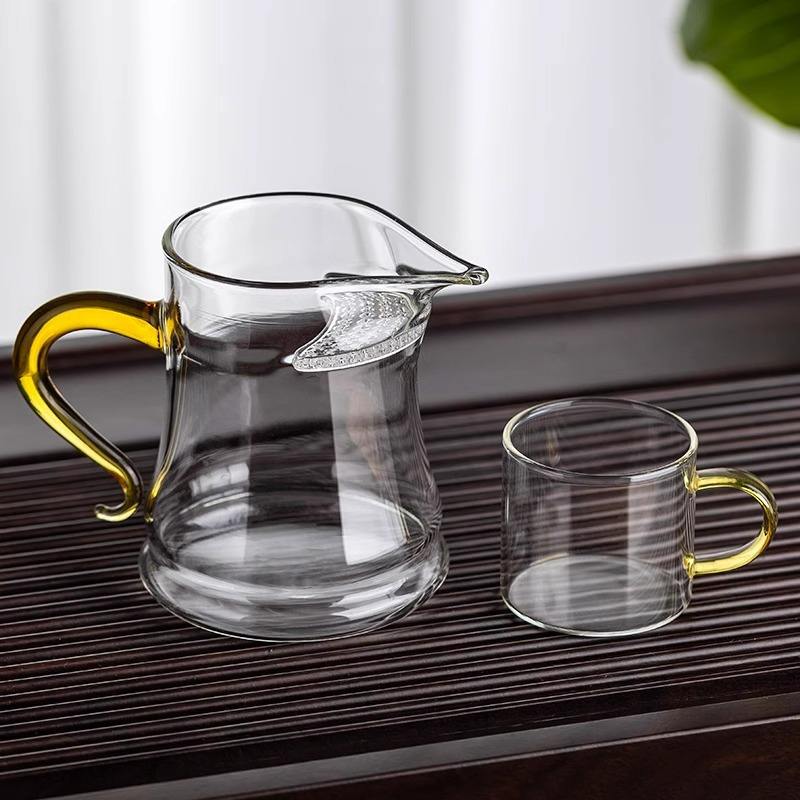 Taza de té de vidrio Fairness con colador integrado, resistente al calor, de borosilicato, para juego de té Kung Fu, uso doméstico