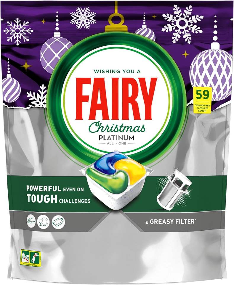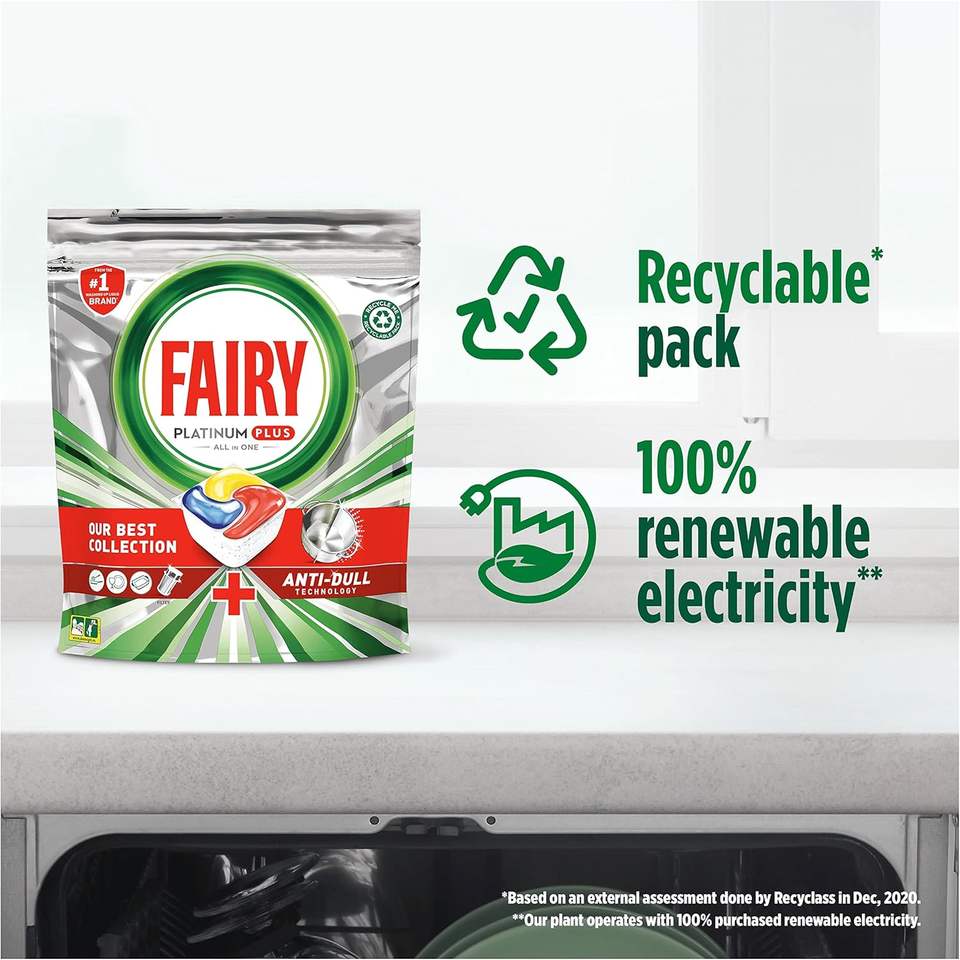 Pastillas para Lavavajillas Fairy Platinum Lemon All In One, con Limpieza Brillante y Aroma a Limón, 59 Pastillas