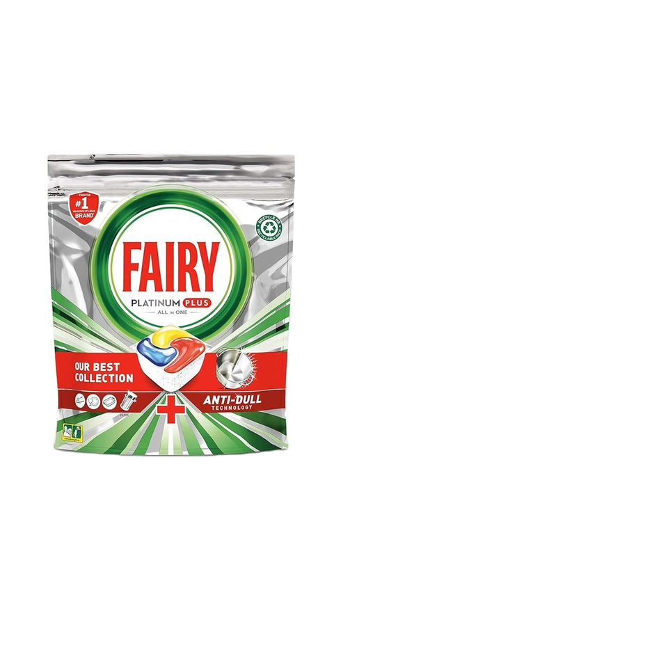 Pastillas para Lavavajillas Fairy Platinum Plus Todo en Uno, Paquete Grande de 70 Pastillas, Limón, TAMAÑO XXL, con Tecnología Anti-Opacidad y Acción de Abrillantador