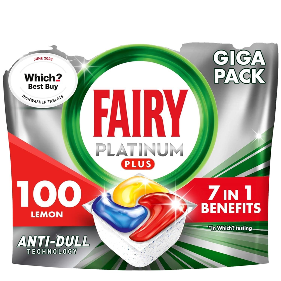 Pastillas para Lavavajillas Fairy Platinum Plus Todo en Uno, Aroma Limón, 100 Pastillas (20 x 5)