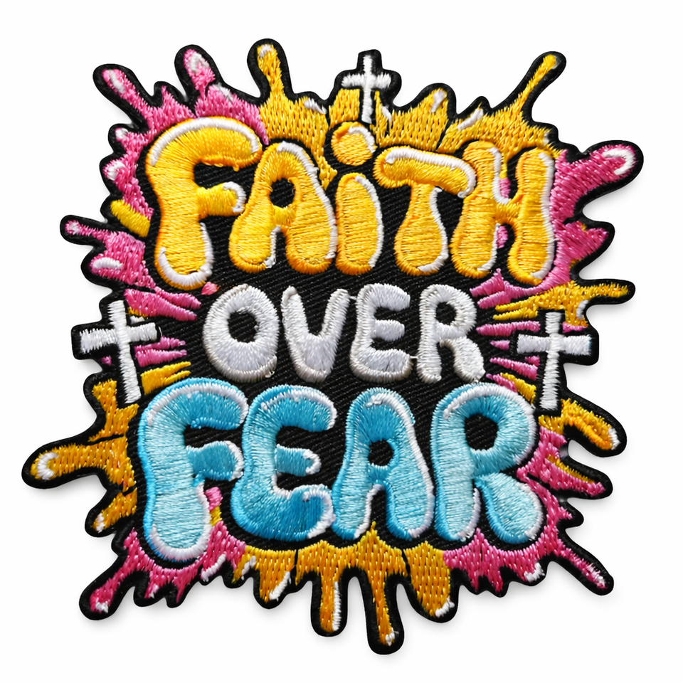 Parche Bordado 'Fe Sobre Miedo' para Chaquetas/Gorras/Mochilas, Colorido, Cristiano, Jesús, Dios, Ron, para Ropa, Manualidades, DIY