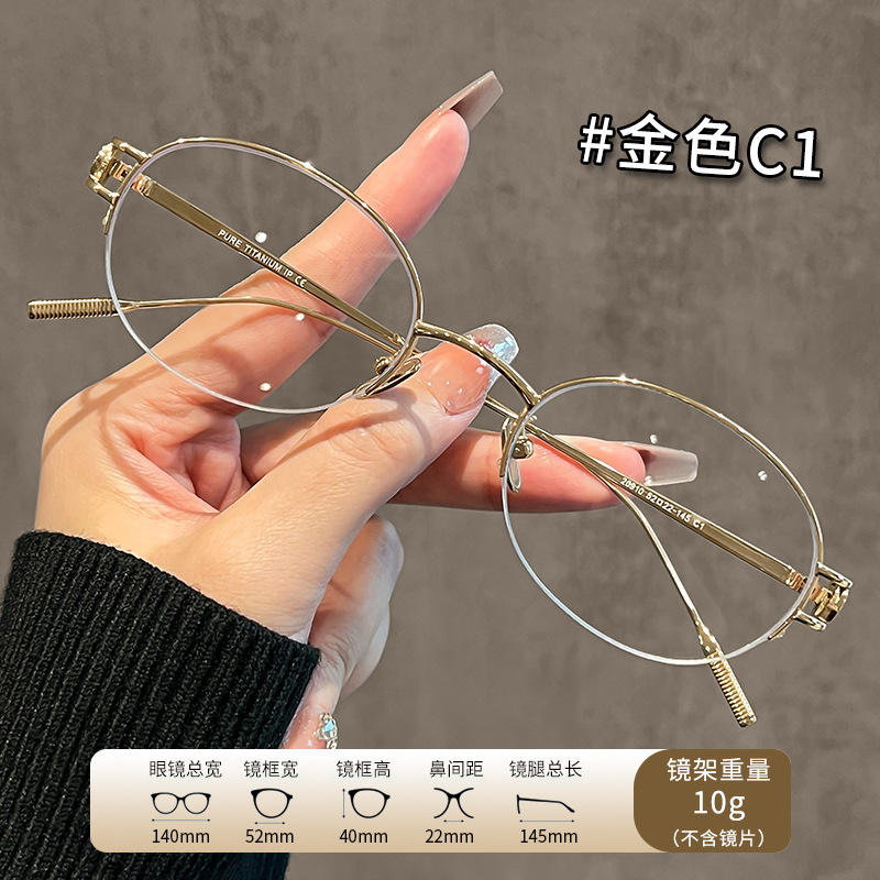 Gafas semimontura de titanio puro ultraligeras estilo Fak, antiluz azul, para mujer, 20910, montura de titanio completo de alta inteligencia