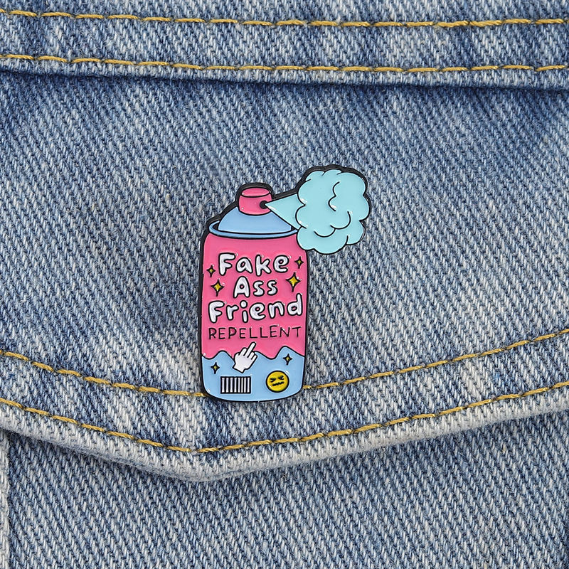 Pin de Esmalte Repelente de Amigos Falsos, Divertido y Satírico, con Dedo Medio, Broche, Insignia para Solapa, Joyería para Mochila, Regalo al por Mayor