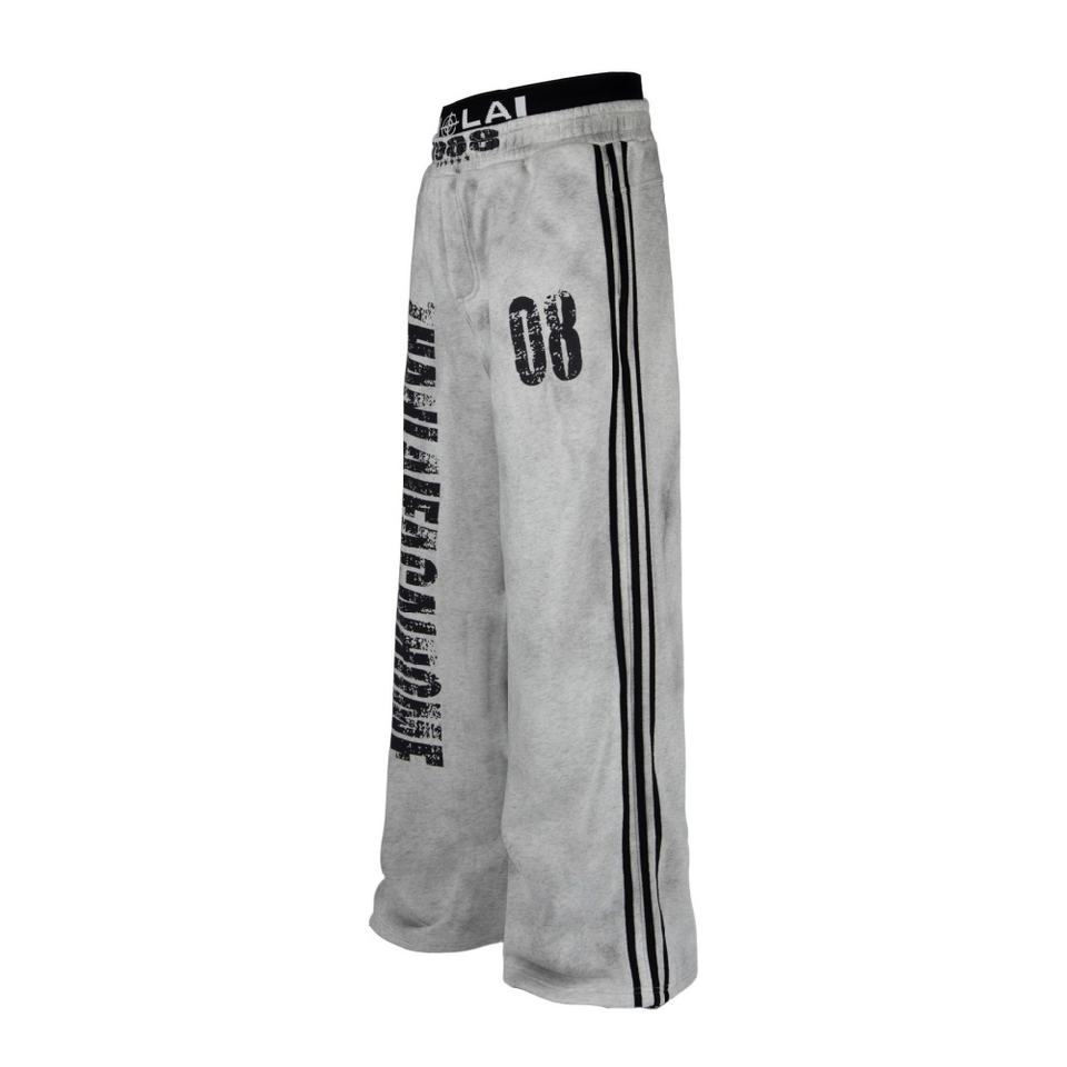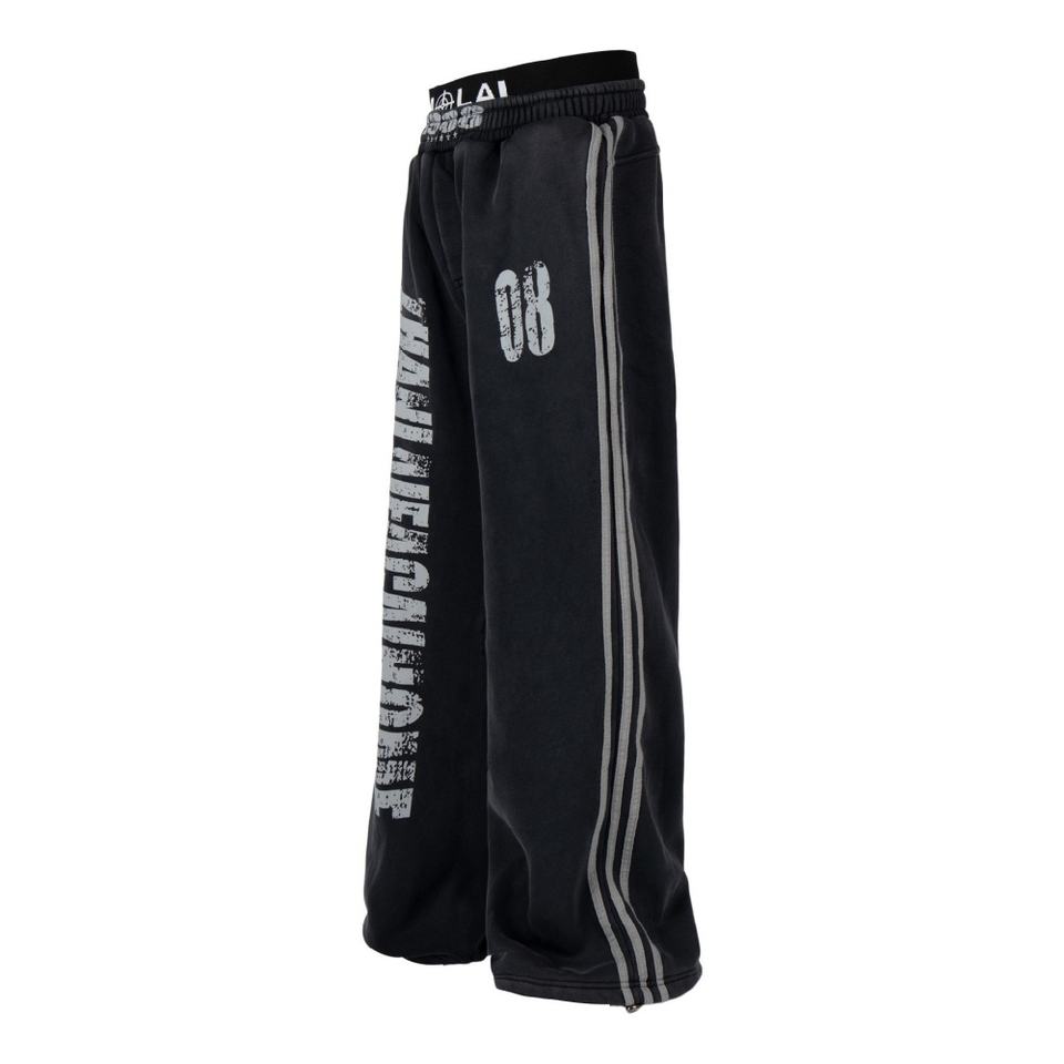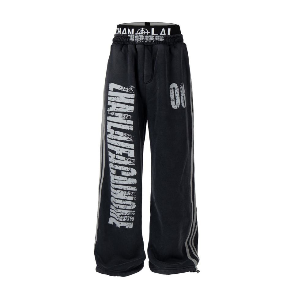 Pantalones de chándal unisex de estilo americano urbano de otoño, desgastados, con letras vintage, de doble cintura, elegantes, de pierna curva y ancha