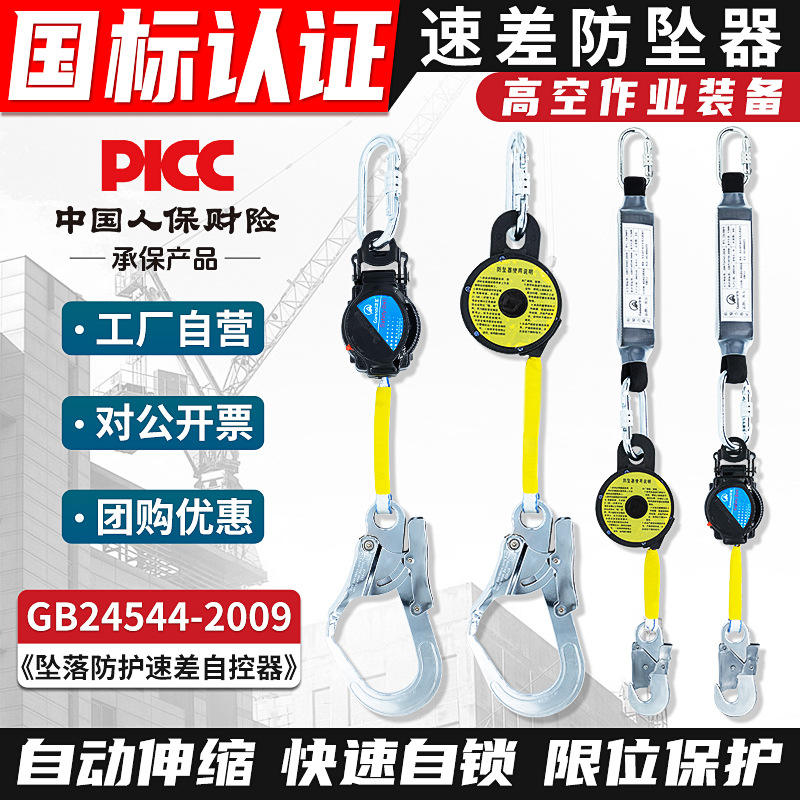 Cinturón de Seguridad Telescópico Anticaídas con Dispositivo de Autocontrol, Resistencia a la Rotura de 1500 kg, para Electricistas, Uso en Exteriores