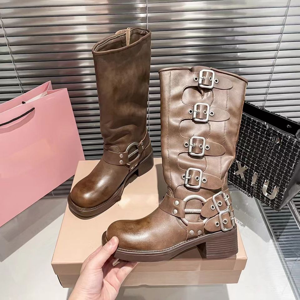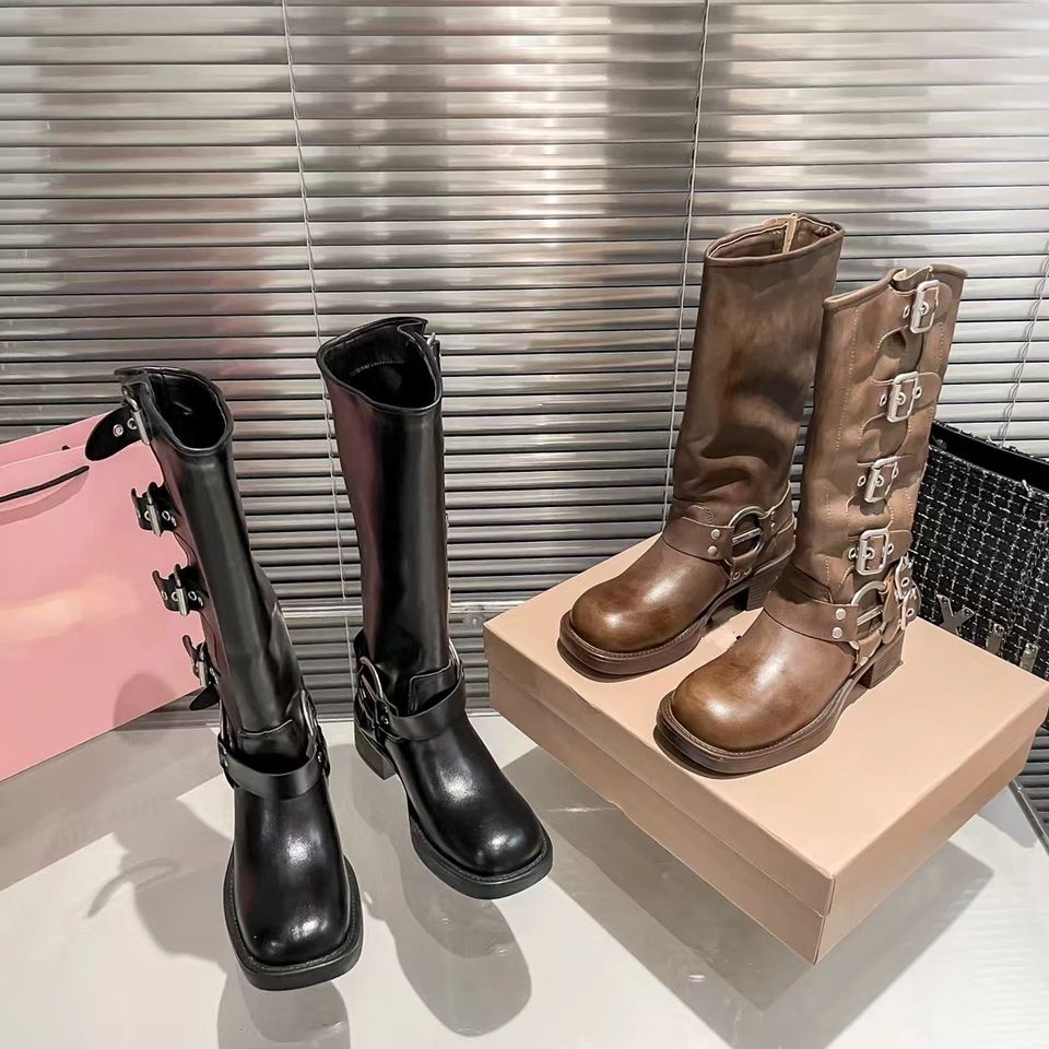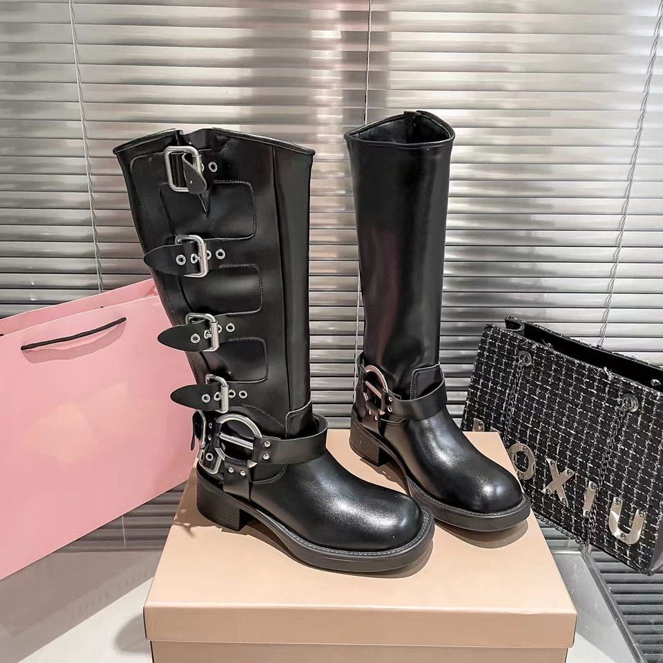 Botas de Mujer para Otoño y Primavera, Estilo Casual, de Moda, con Hebilla Metálica de Lujo, Estilo Motociclista, Botas Largas hasta la Rodilla
