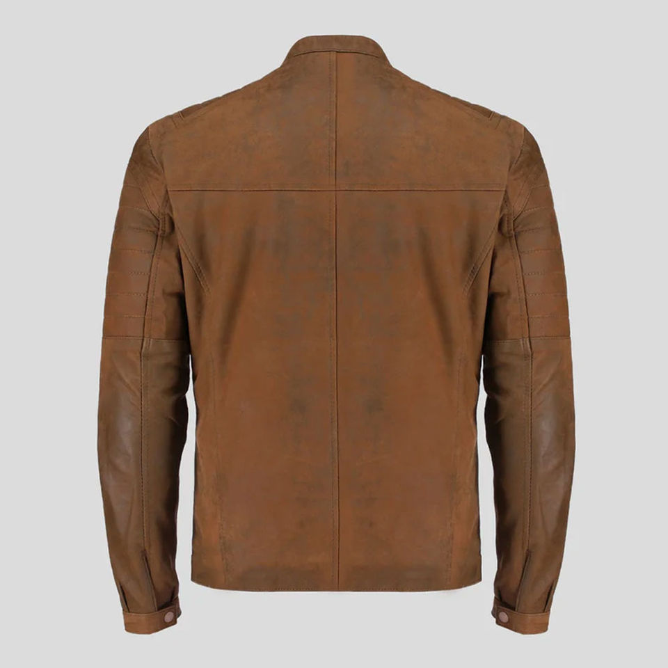 Chaqueta de cuero genuino para hombre de otoño invierno con cuello levantado y logotipo frontal de alta calidad hecha en Pakistán