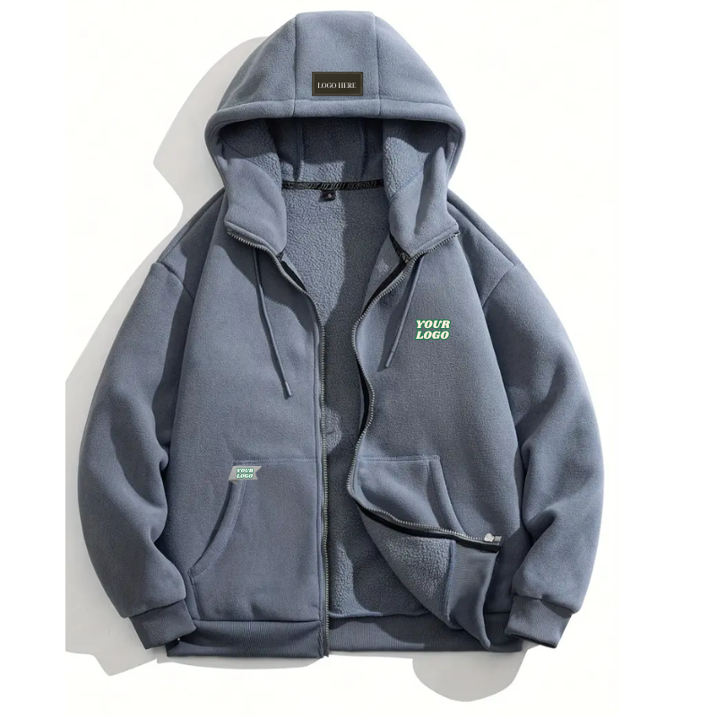 Chaqueta polar con capucha para hombre de Otoño/Invierno 100% poliéster con cremallera completa térmica a prueba de viento de gran tamaño para exteriores