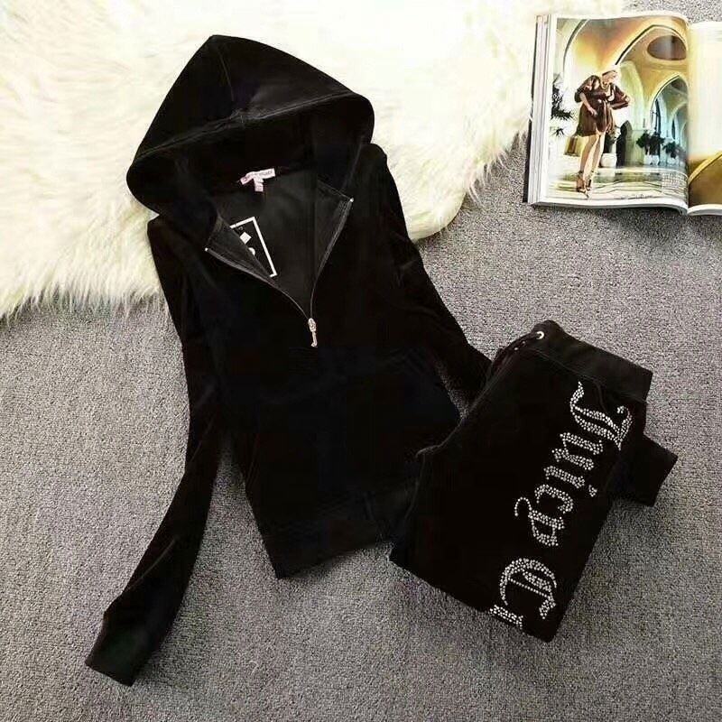 Conjunto Deportivo de Terciopelo para Mujer, Otoño Invierno, con Letras de Pedrería, Sudadera con Capucha, Ecológico, de Secado Rápido y Transpirable, de Dos Piezas