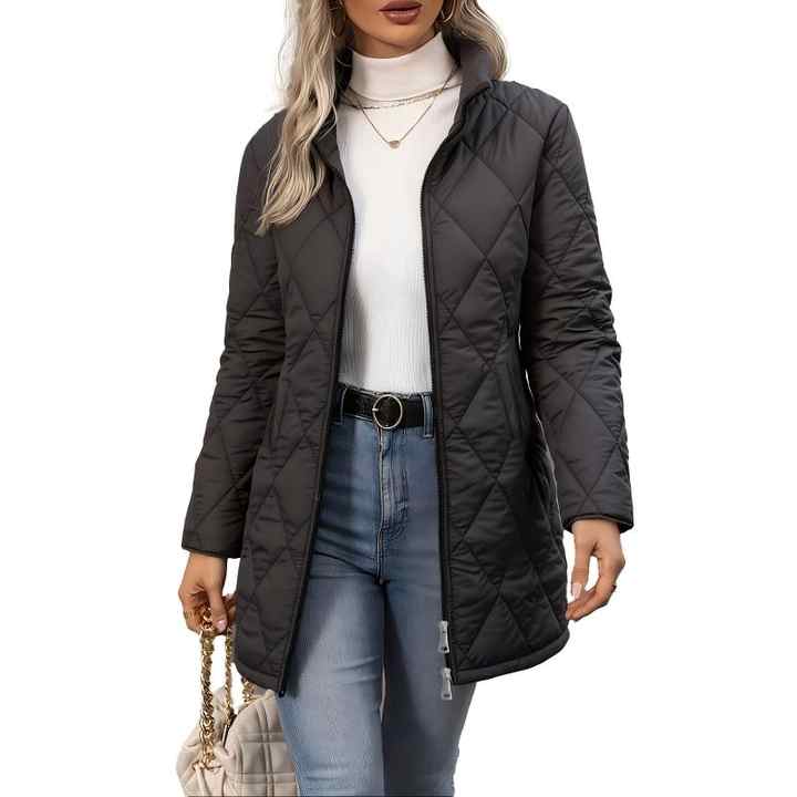 Abrigo Acolchado Versátil de Otoño/Invierno con Cuello Alto y Capucha, Impermeable, 100% Poliéster | Abrigo Largo con Costuras de Diamantes Estilo Preppy