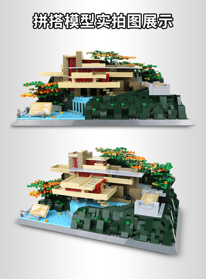 Modelo Arquitectónico en Miniatura Fallingwater, Juego de Bloques de Construcción DIY, Juguete Educativo de Construcción de Monumentos de Plástico para Niños