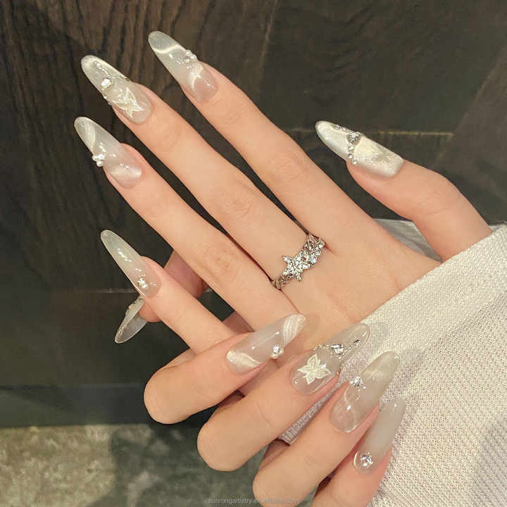 Uñas Postizas de Color Sólido, Estilo Francés, Ojo de Gato, Mariposa, Stiletto Largo, Uñas Artificiales