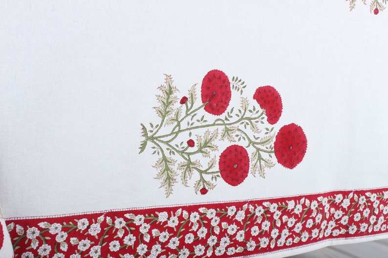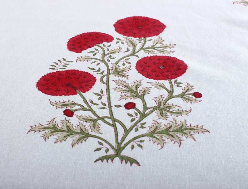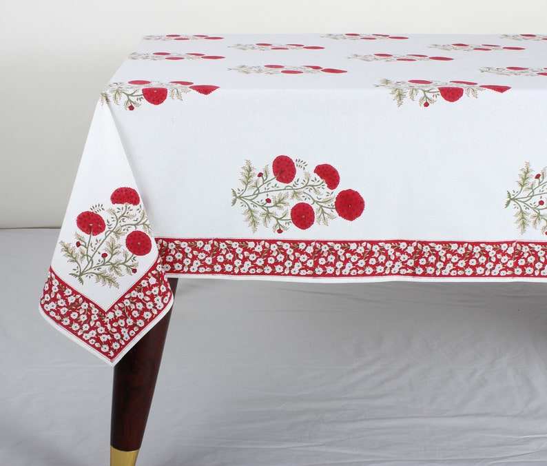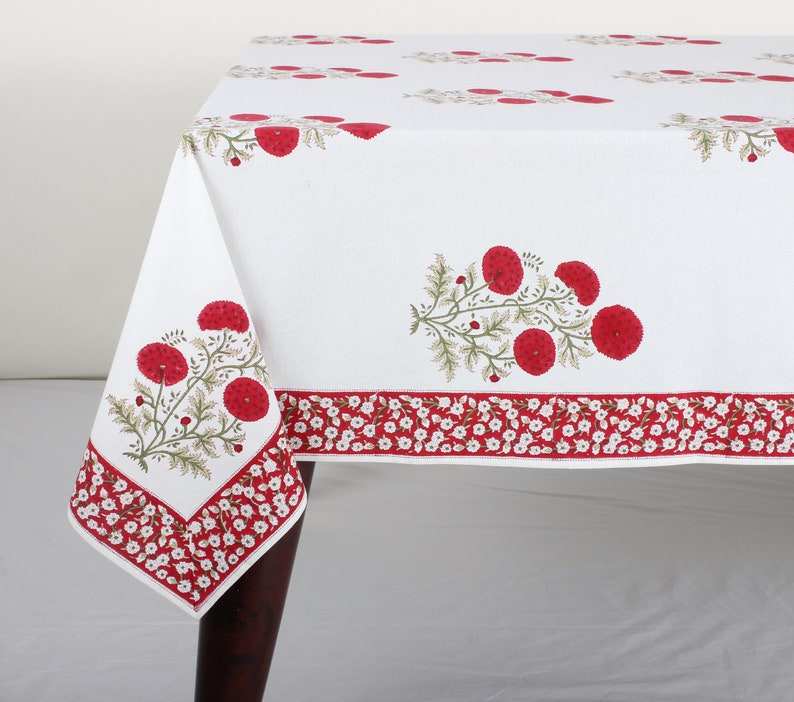 Cubierta de mesa de tendencia de Falun 2025, estampado de bloque de mano Floral indio rojo verde para restaurante, casa de campo, día de San Valentín, manteles