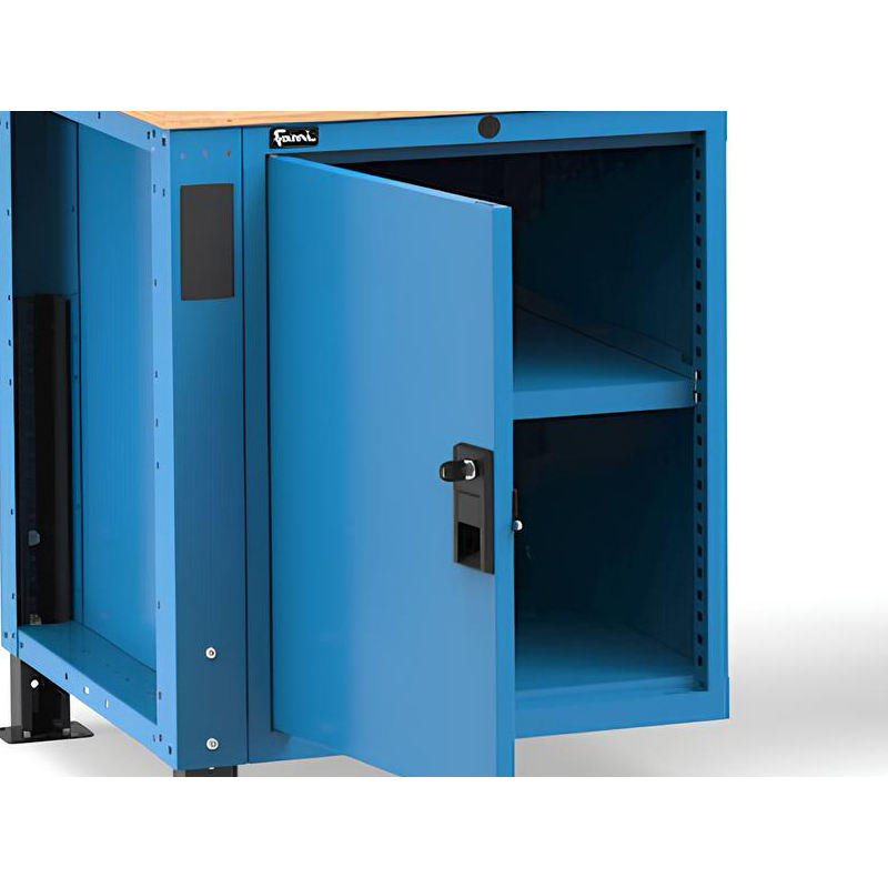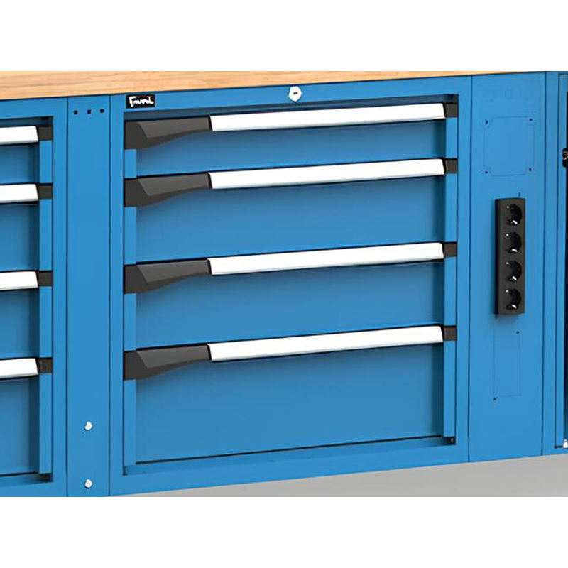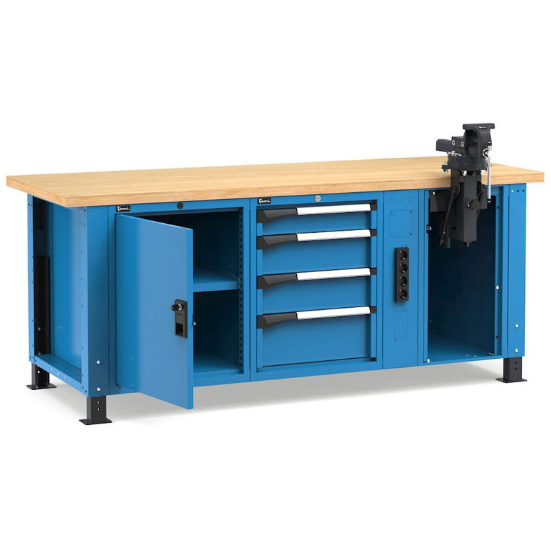 Fami Master 200cm banco de trabajo ajustable azul con 4 cajones, gabinete, tornillo y 4 enchufes