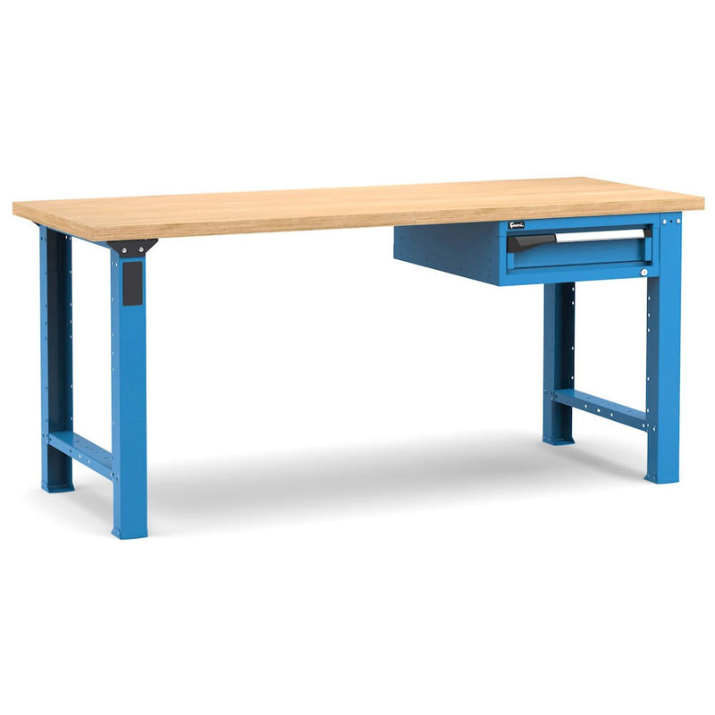 Banco de trabajo azul Fami Master 200cm con tapa de madera y cajón