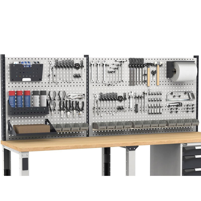 Banco de trabajo regulable Fami Master 250cm en gris con pared empotrada y 4 cajones