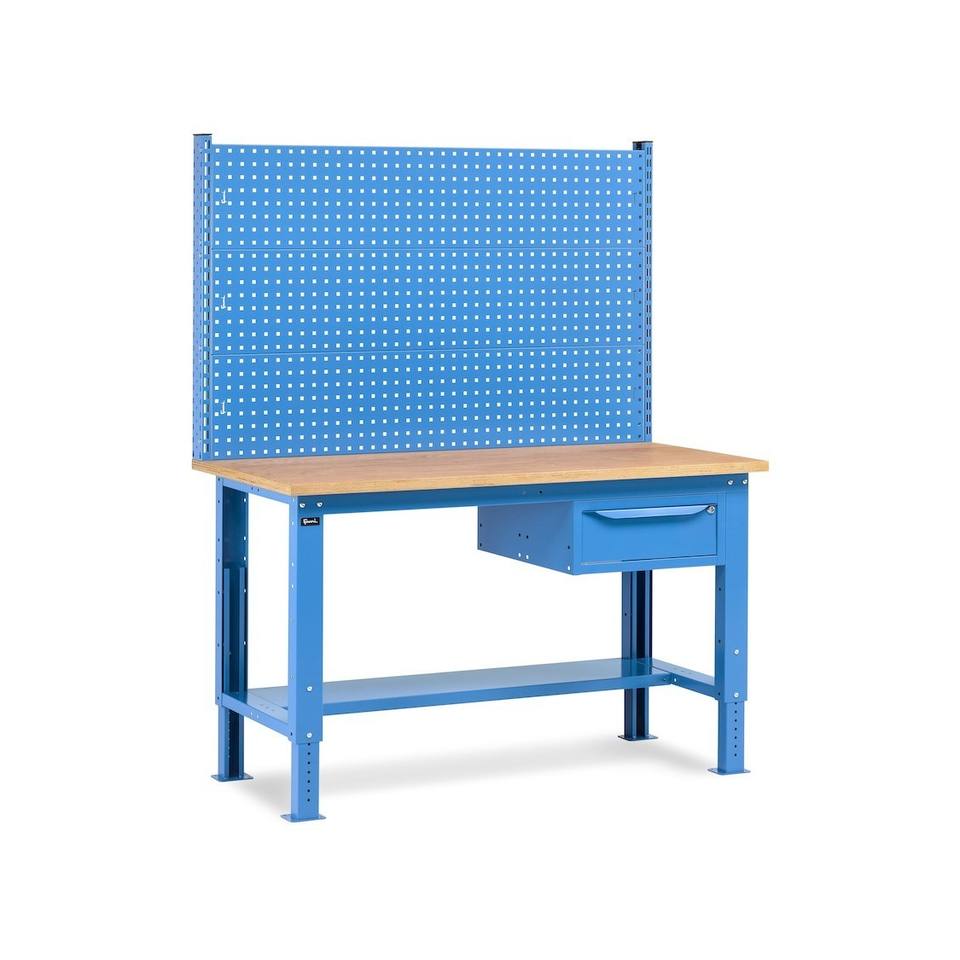 Fami banco de trabajo ajustable con tapa de madera, cajón y pared 150CM WORK1517