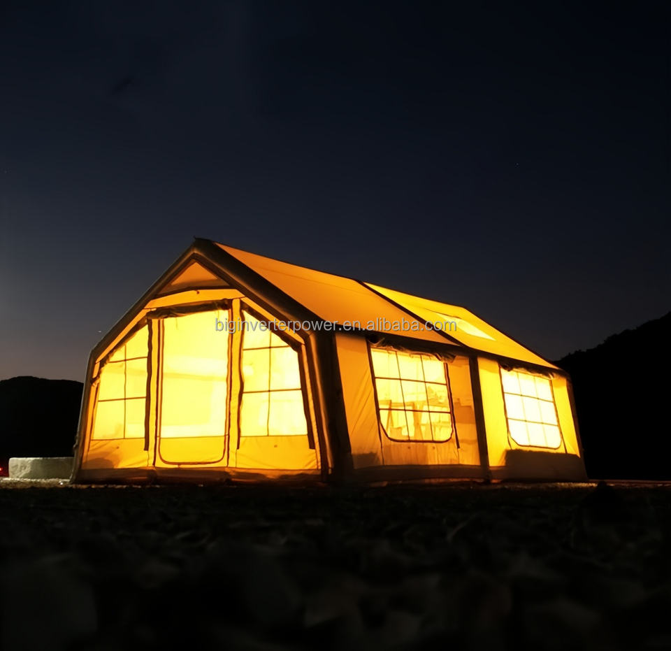 Carpa inflable familiar de dos dormitorios y una sala de estar, de doble capa, de tela Oxford, equipo de camping para glamping al aire libre.
