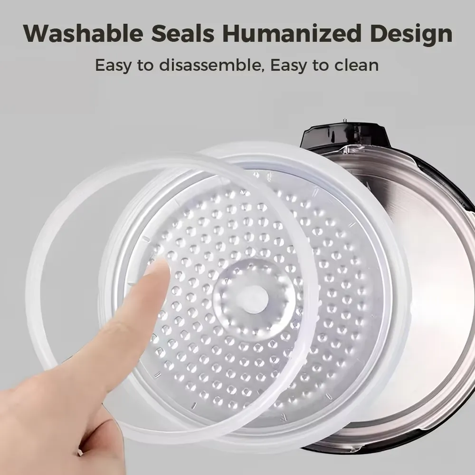 Función:Ajustable de ajuste de presión, Preajuste del tiempo de cocción, LED pantalla, Interior de la olla con recubrimiento antiadherente, Protección contra sobrecalentamiento, Dispositivo de liberación de presión