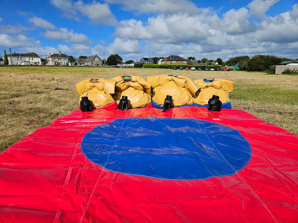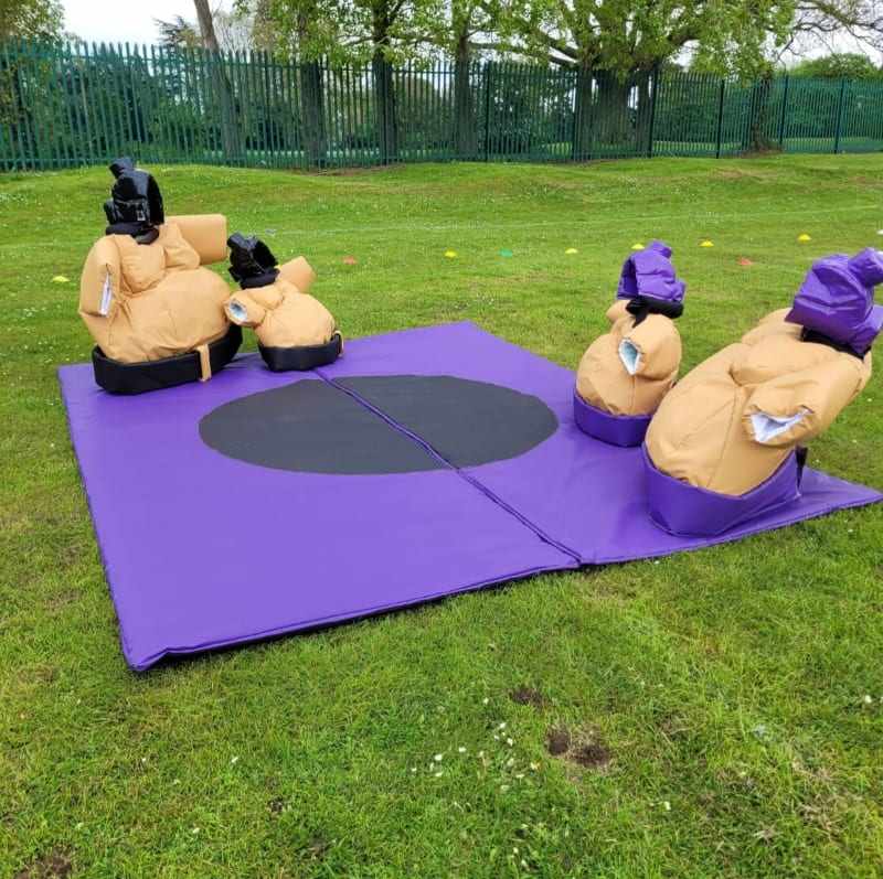 Paquete de trajes de sumo familiar, disfraz de sumo inflable para niños/adultos, paquete de traje de sumo familiar- (2 adultos, 2 trajes para niños y 1 alfombra)