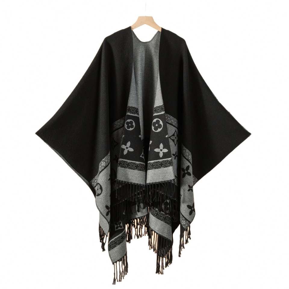 Color:Solid Tassel Strap Shawl Black,