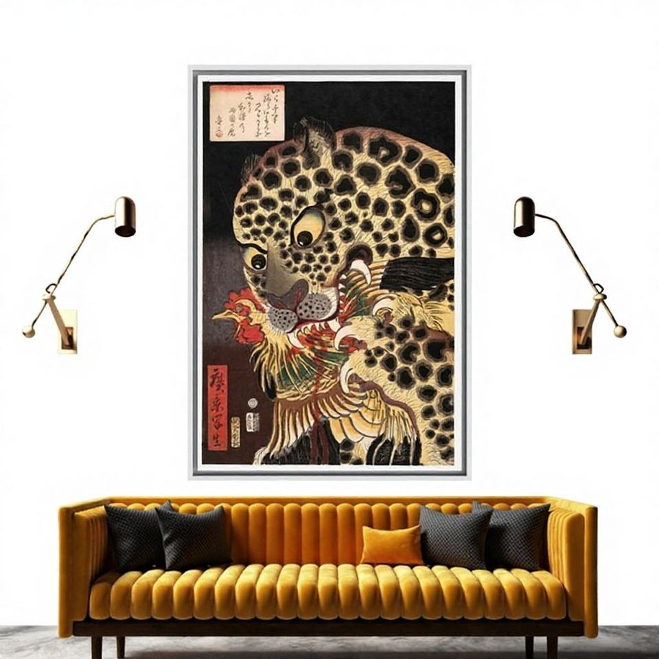 Famoso lienzo impreso con paisajes japoneses, panel decorativo de pared estilo Art Déco, obra de arte con marco transparente para colgar