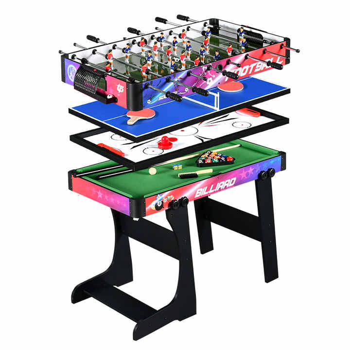 Mesa de Juego Multifuncional 4 en 1 para Niños, Mesa Plegable con Billar, Fútbol, Hockey y Tenis de Mesa TM-4883