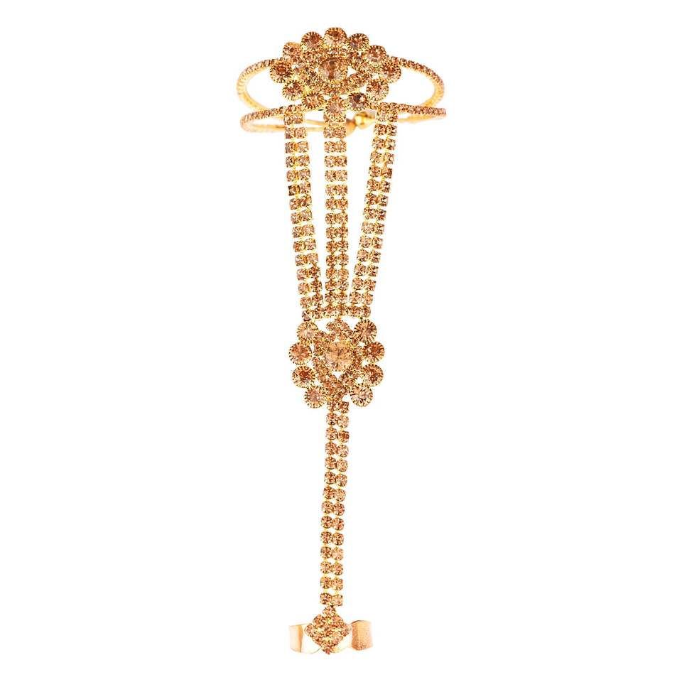 Fancy CZ Crystal Link Chain Ring Bracelet Hath Phool para mujeres niñas