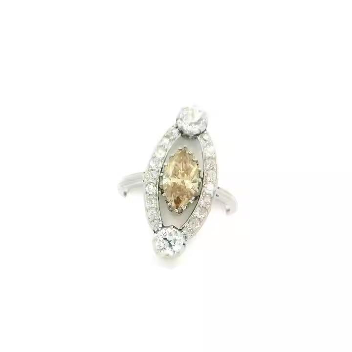 Fancy Color 3 CT Canary Yellow Diamond Ring Marquise Cut Original Moissanite Diamond Ring para boda y compromiso