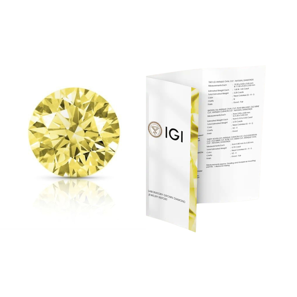 Diamante de laboratorio de color elegante, 1CT 2CT 3CT VVS VS, corte redondo, diamante suelto cultivado en laboratorio, diamante amarillo, diamantes de color auténticos de laboratorio