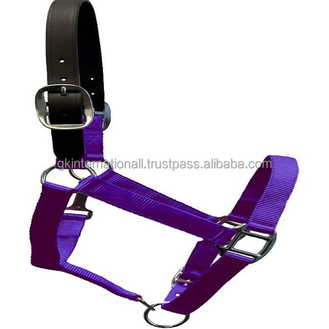 Fancy Colorful Nylon Webbing Extra Comfort Nylon Horse Halter en COB completo sobre tamaños con doble corona Hebilla de níquel y anillos