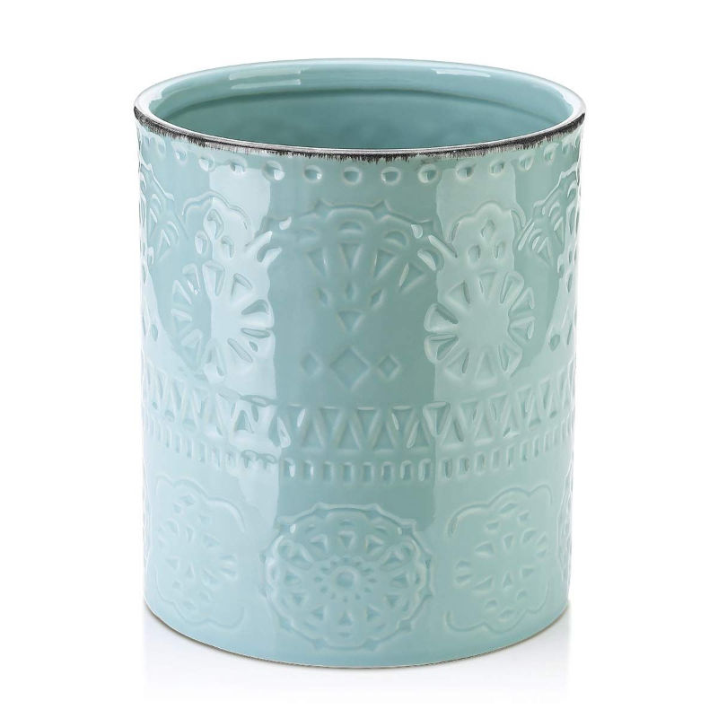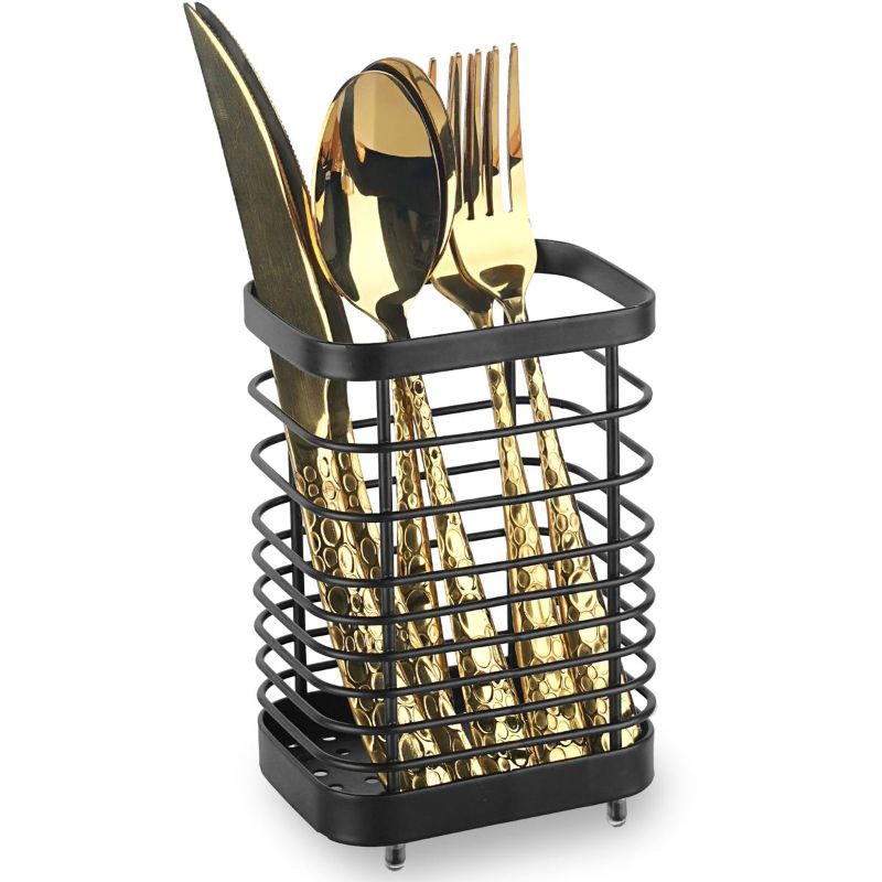 Elegante Porta Cubiertos Metálico Decorativo con Recubrimiento en Polvo Azul, Organizador de Cubiertos Redondo para Decoración de Comedor y Fiestas en el Hogar